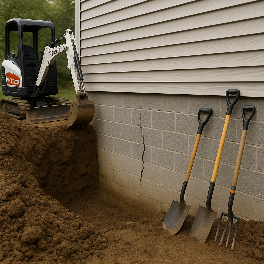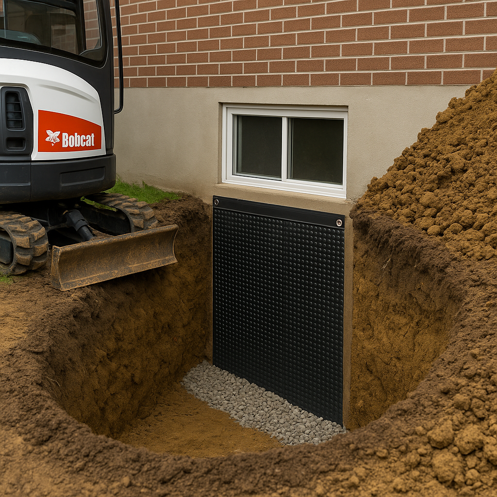 Exterior Waterproofing – Excavating around the foundation and applying waterproof membranes and drainage systems to keep water out.